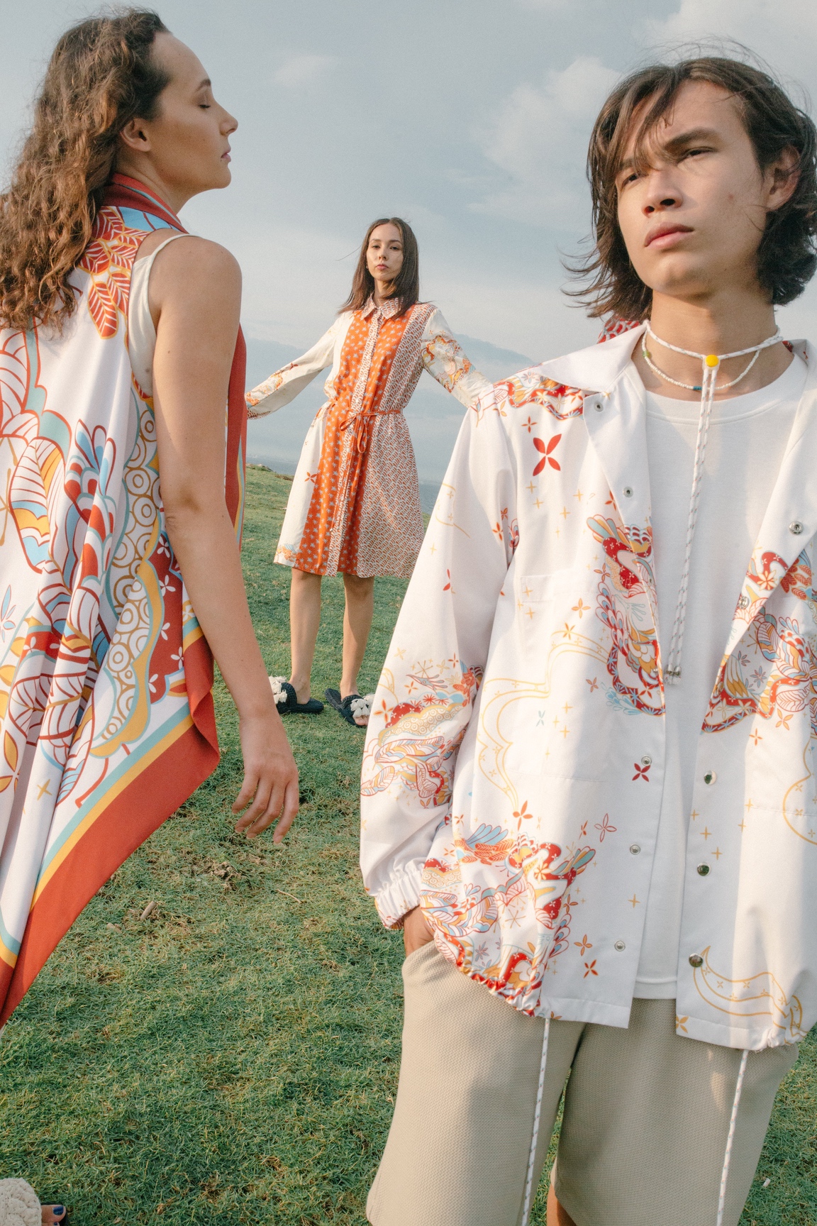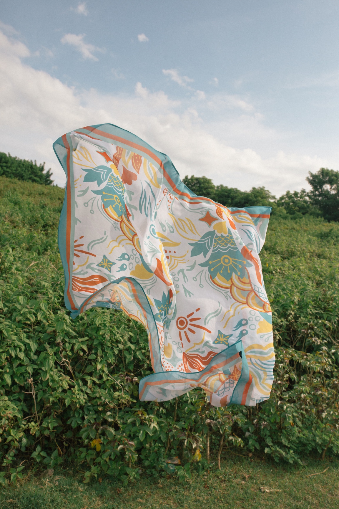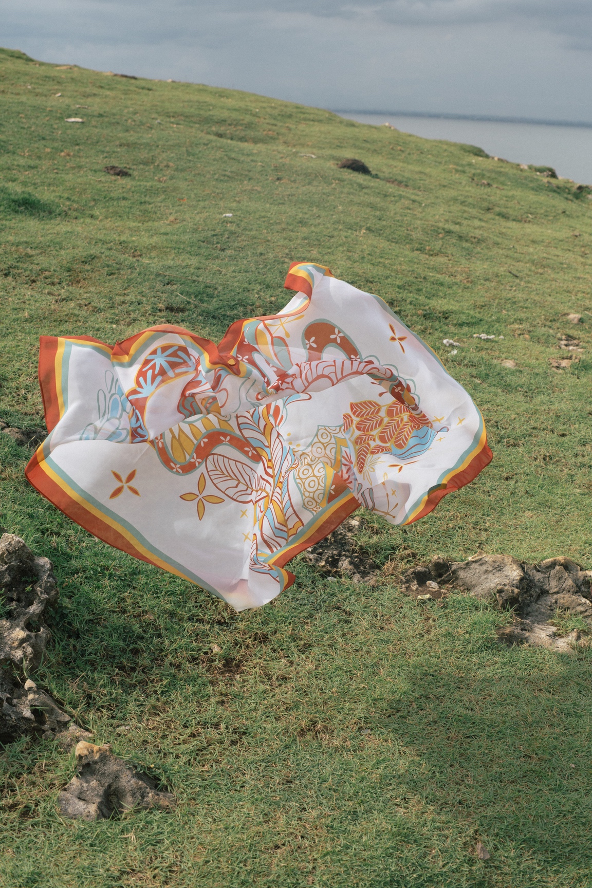 Each print in this collection is designed to represent the three elements on earth: the land, the sea, and the atmosphere. The land is represented by Palemahan prints that take elements of plants, air, sun, and water—the main components to sustain life on earth. Meanwhile, the sea is represented by Segara that plays with the shapes of coral reef, planktons, fish scales, and seaweed as its main elements. Lastly, there is Paksi which represents the atmosphere by using elements of birds, feathers, and clouds.