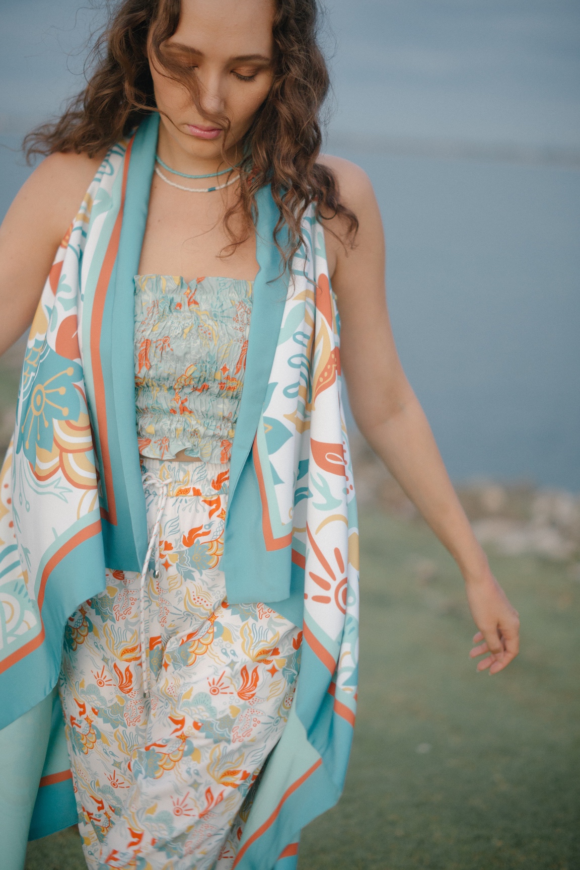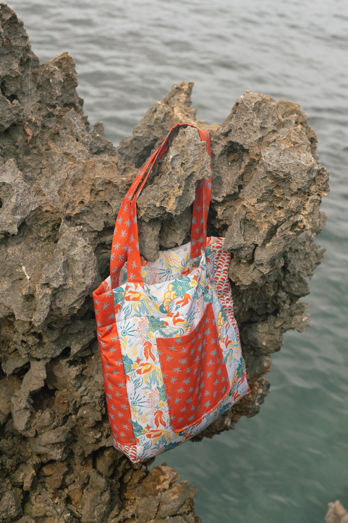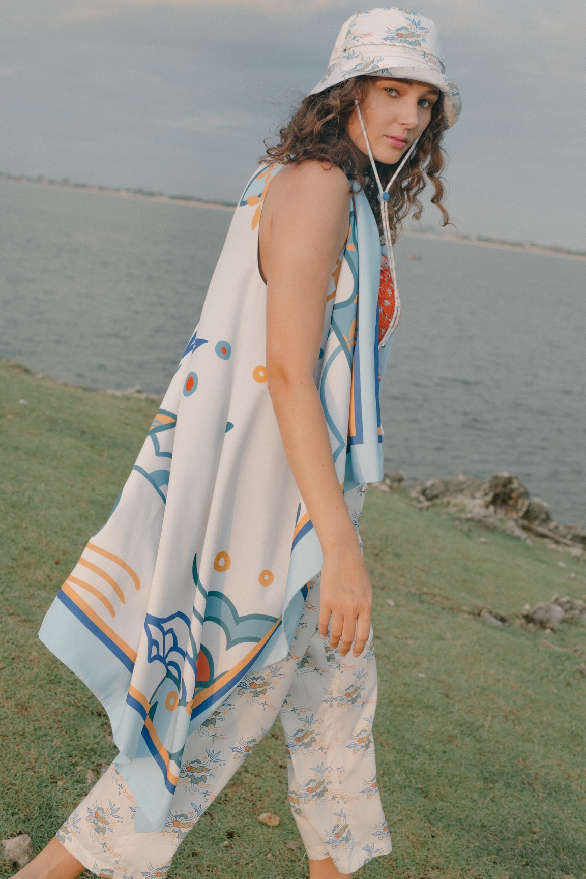 Each print in this collection is designed to represent the three elements on earth: the land, the sea, and the atmosphere. The land is represented by Palemahan prints that take elements of plants, air, sun, and water—the main components to sustain life on earth. Meanwhile, the sea is represented by Segara that plays with the shapes of coral reef, planktons, fish scales, and seaweed as its main elements. Lastly, there is Paksi which represents the atmosphere by using elements of birds, feathers, and clouds.